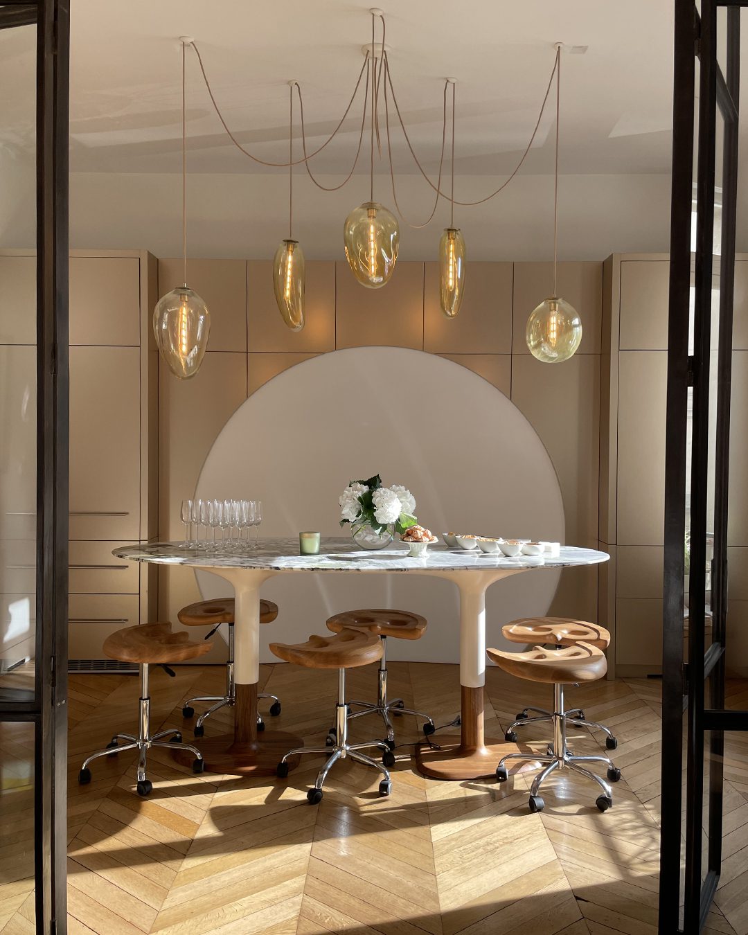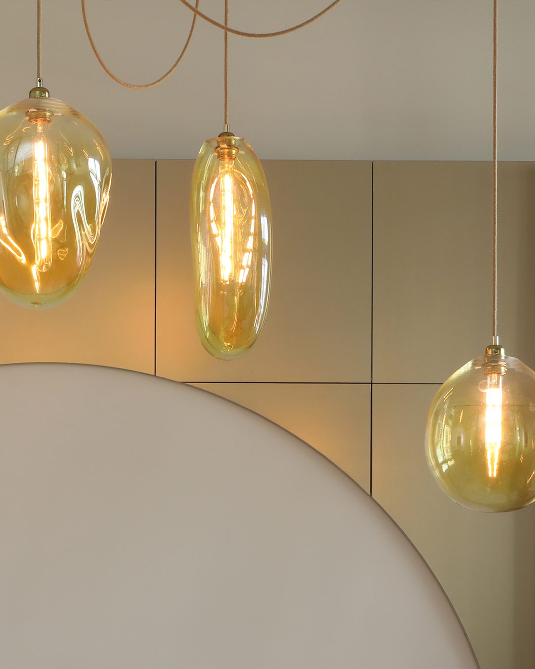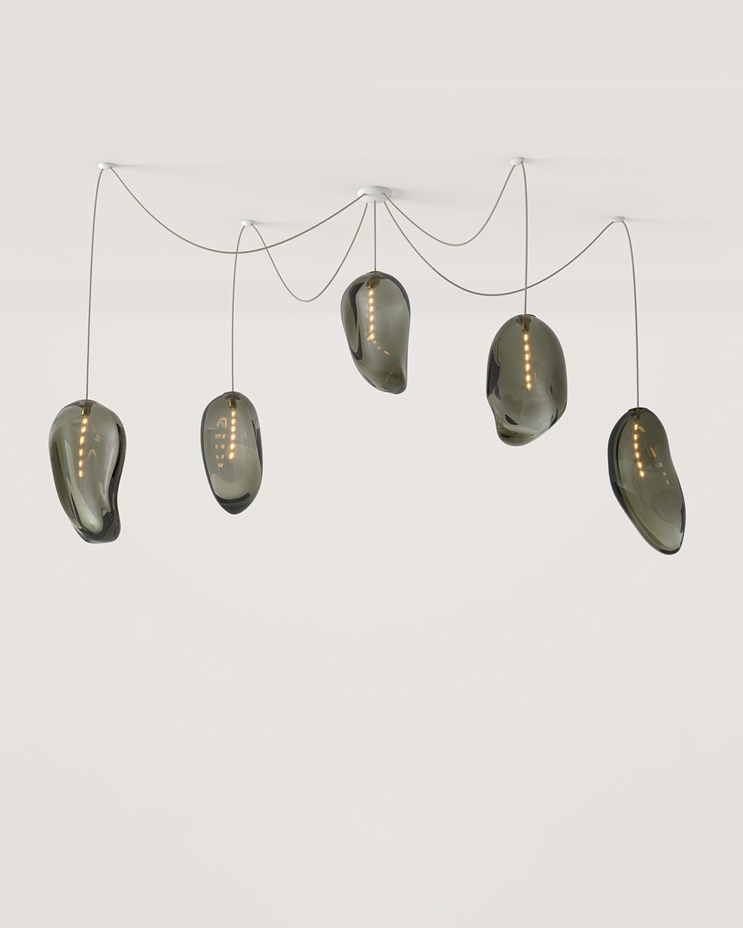 La suspension Cloud en verre soufflé à la bouche est un pièce unique et exclusive. Légère comme les nuages , elle créé des effets lumineux remarquables grâce au verre délicatement moiré.