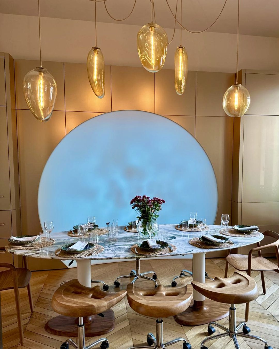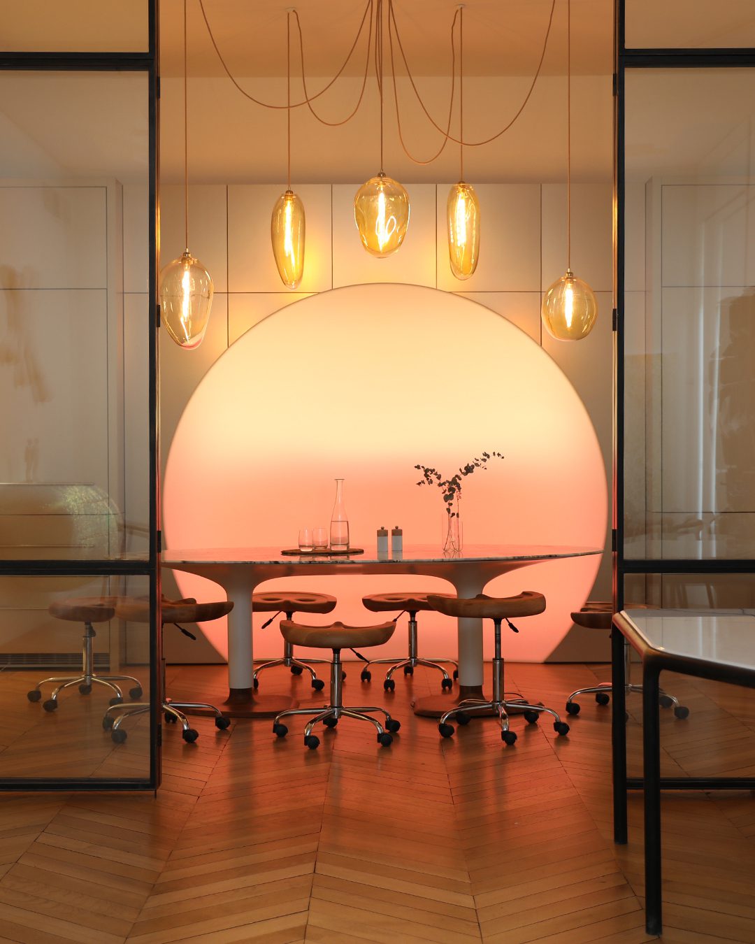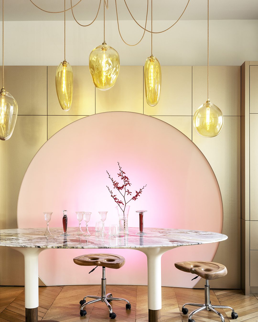 La suspension Cloud en verre soufflé à la bouche est un pièce unique et exclusive. Légère comme les nuages , elle créé des effets lumineux remarquables grâce au verre délicatement moiré.