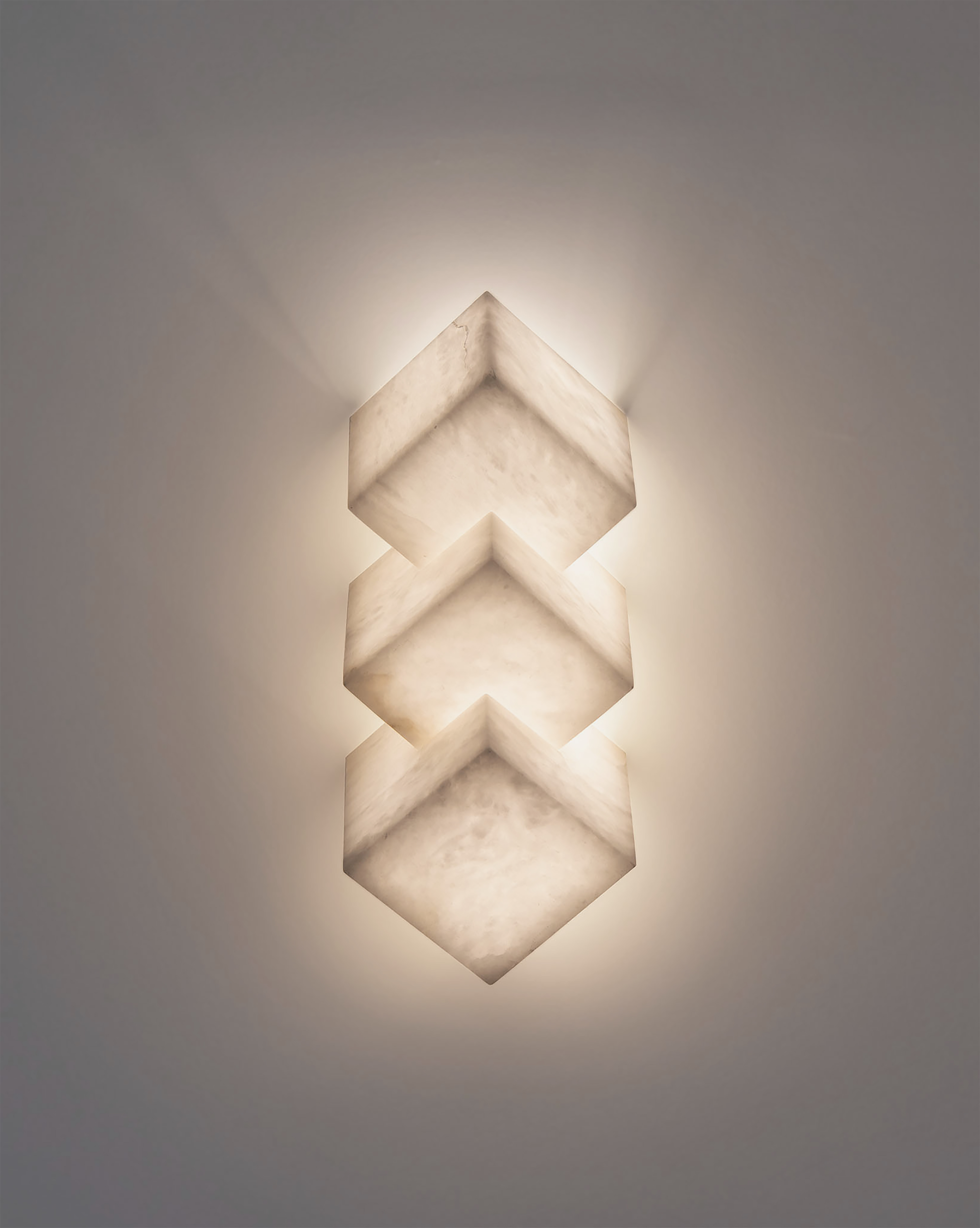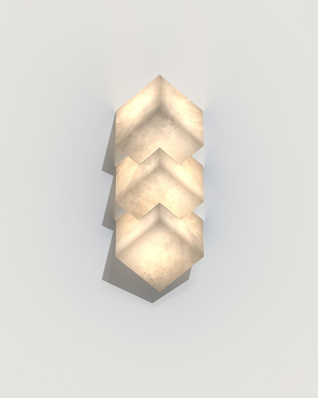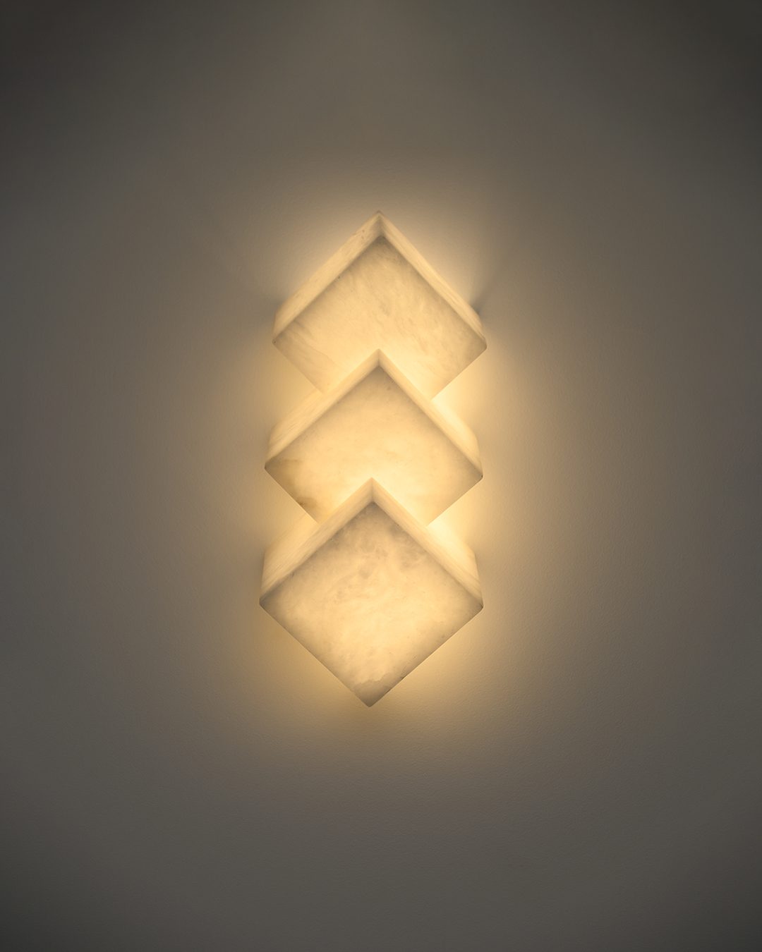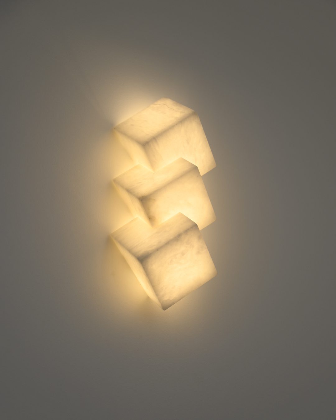 Cube, une applique murale en albâtre qui apporte une source de lumière intime et chaleureuse dans un intérieur. Un esprit contemporain synonyme d’une écriture intemporelle et élégante.