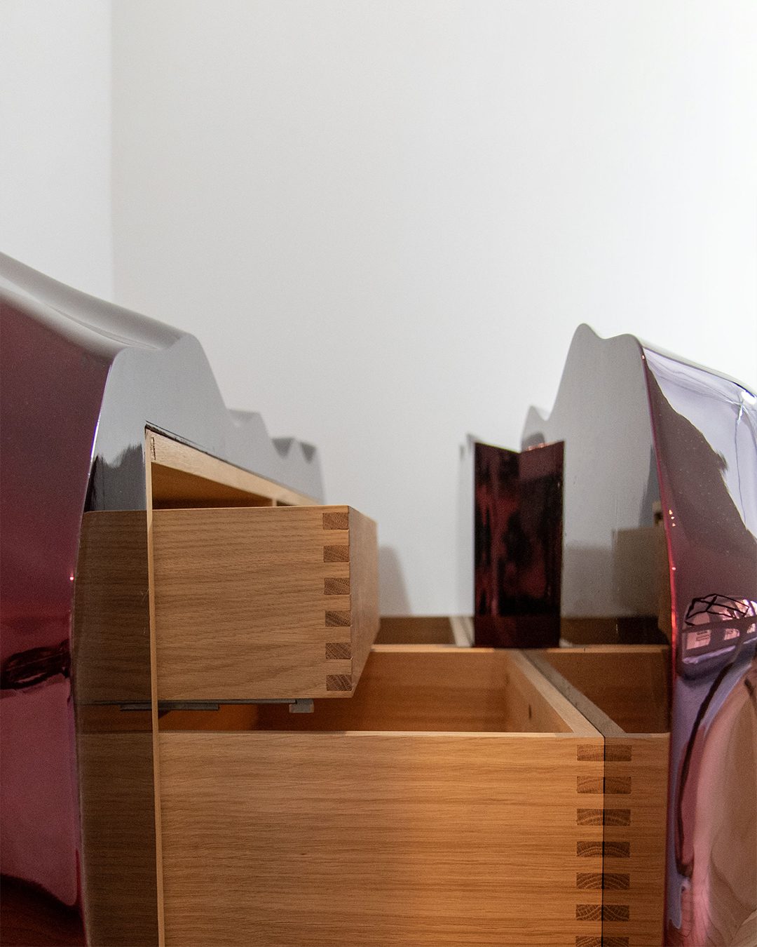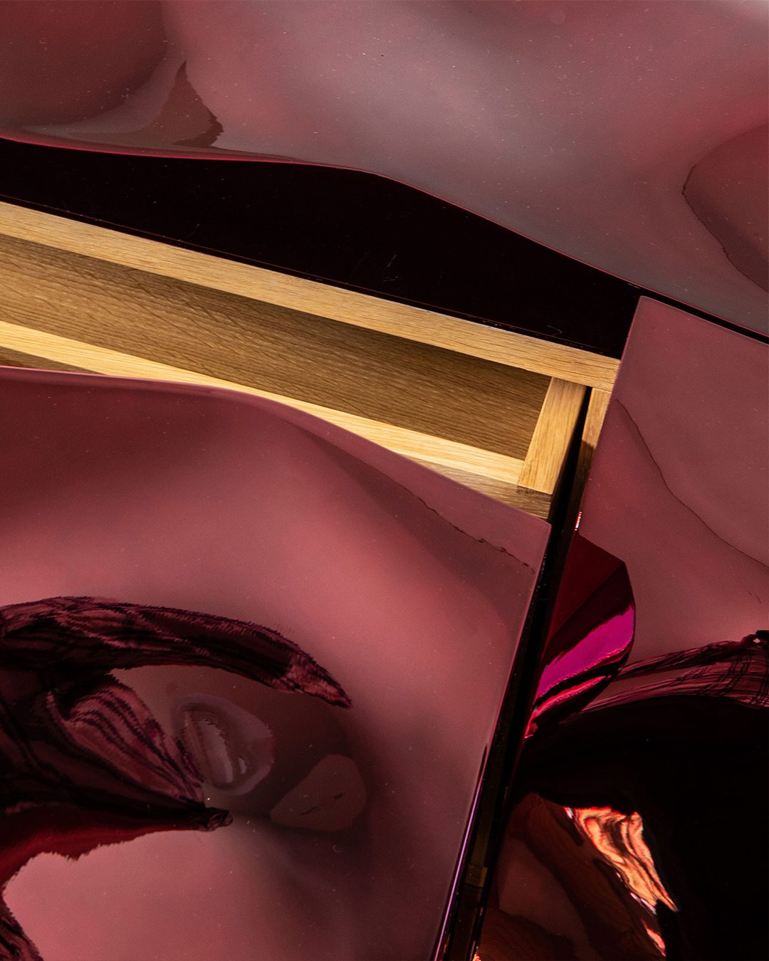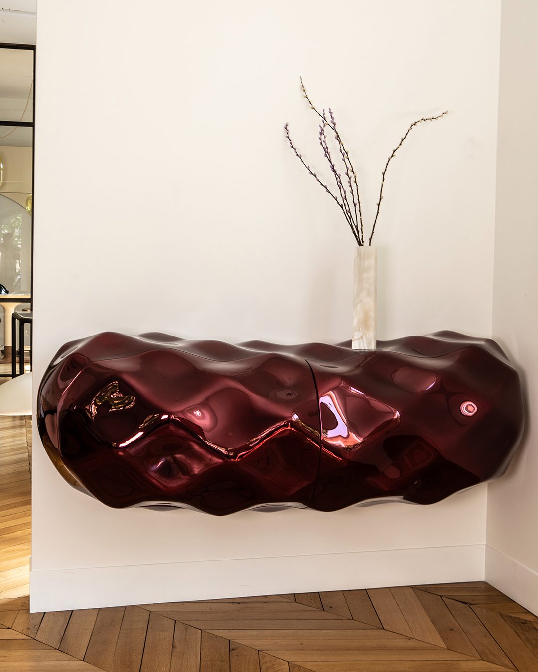 Design percutant et original pour ce meuble géométrique à la finition poli chromé. La commode Jelly est un mélange d’éléments extravagants et sophistiqués, il s’inscrit dans une ligne de « jamais vu ».