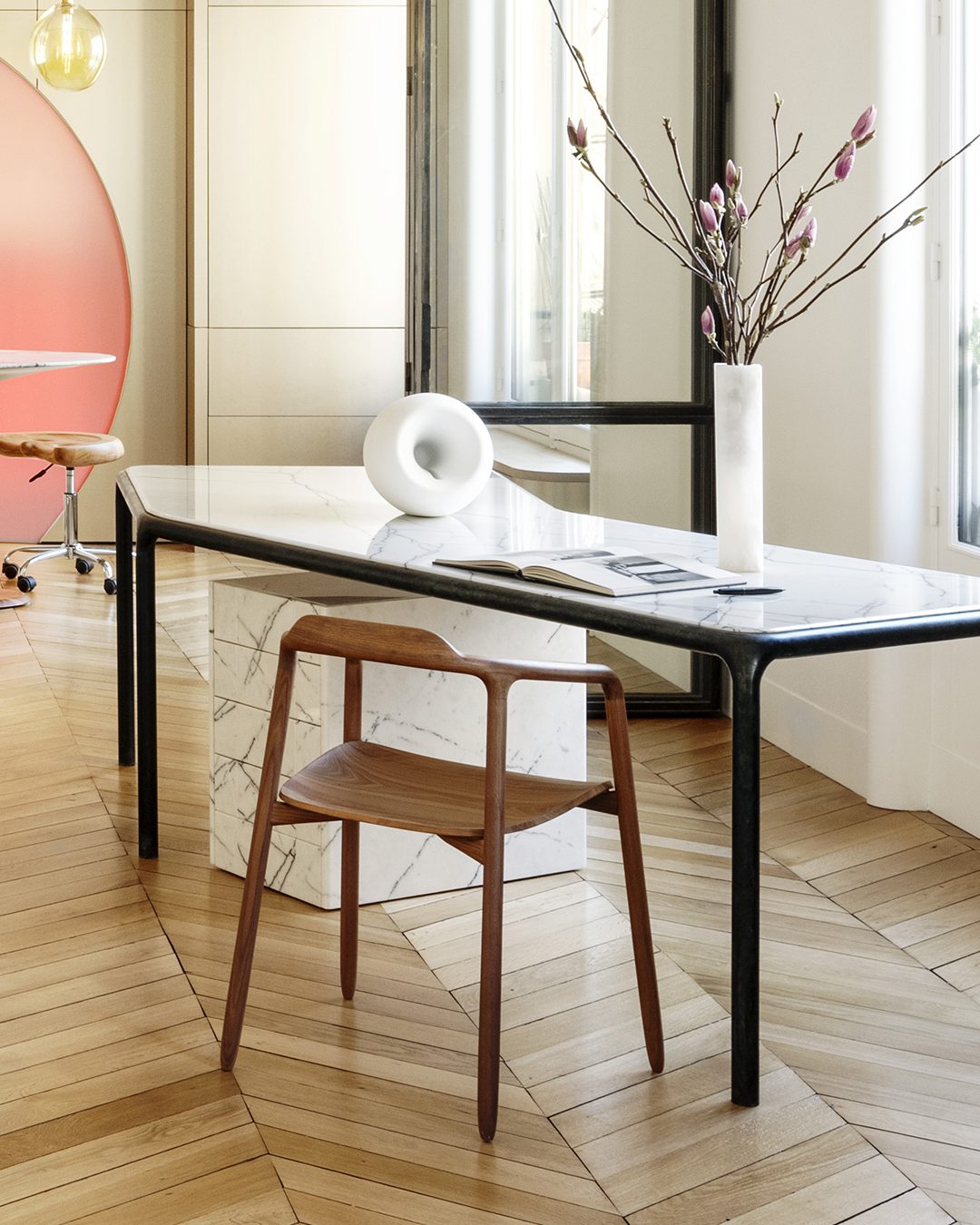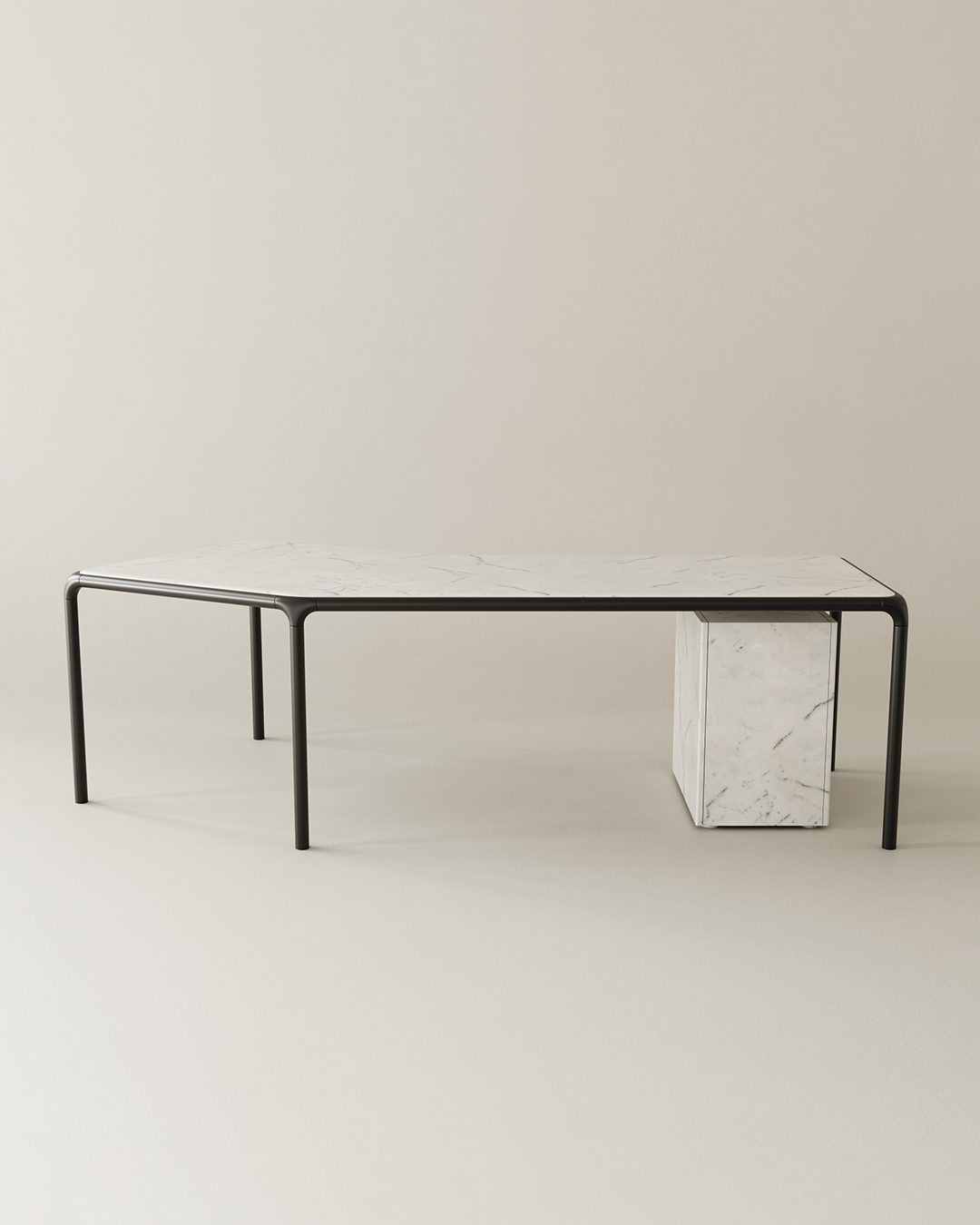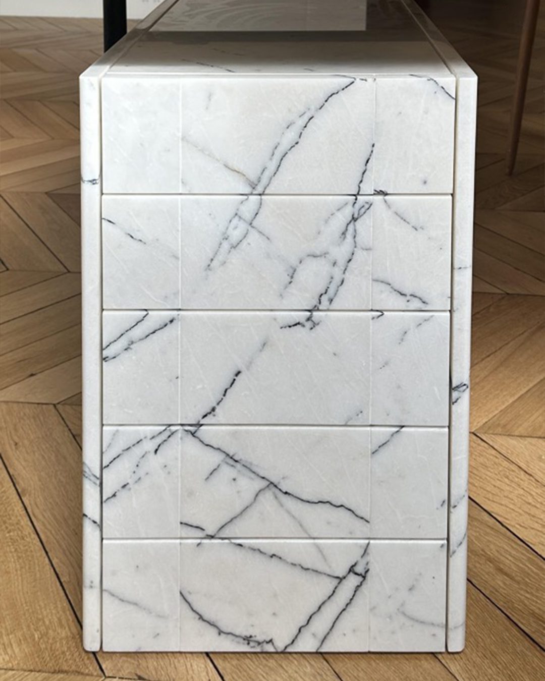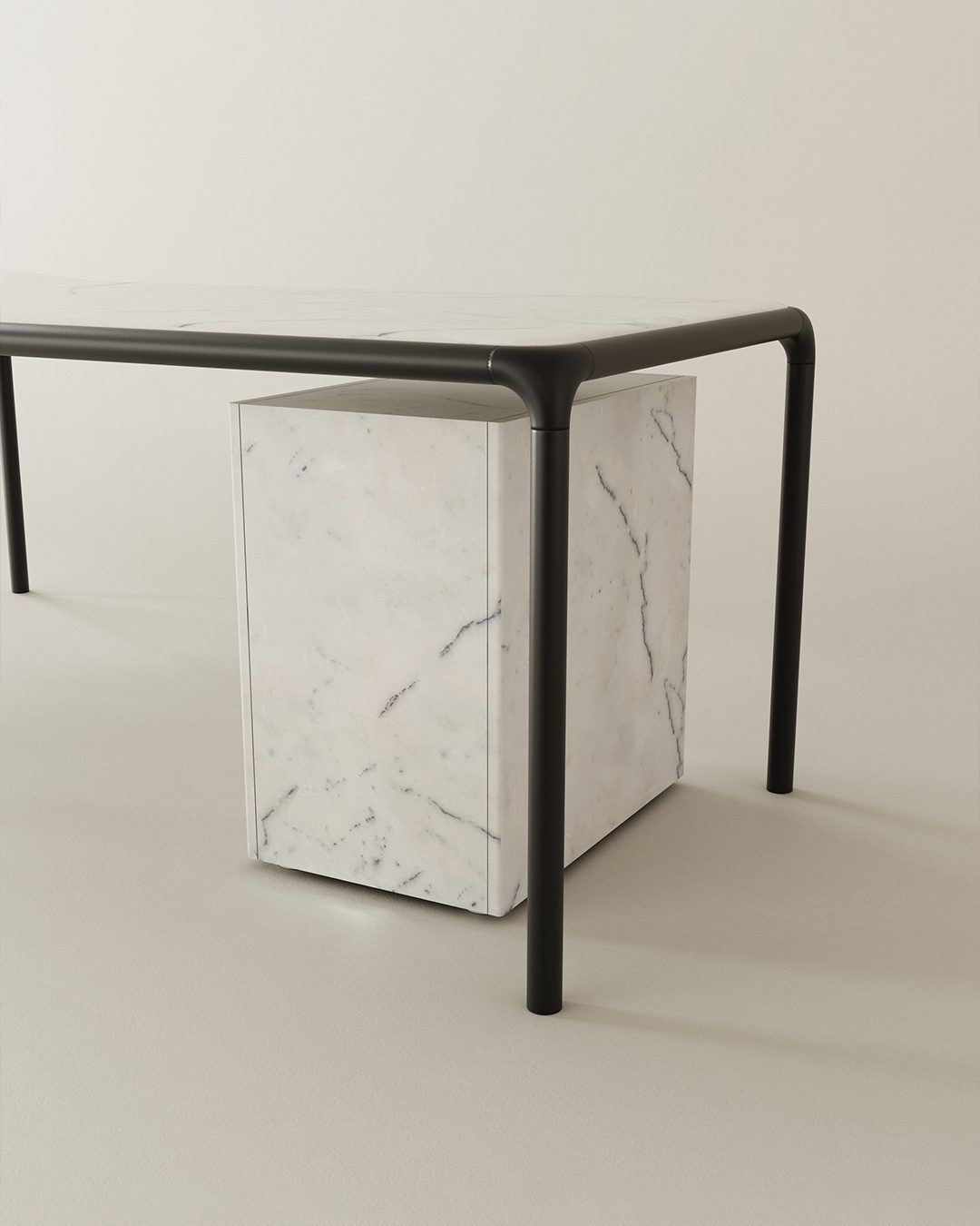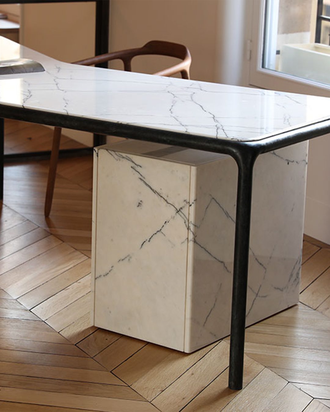 Pensé comme une extension naturelle du bureau Ministre, ce caisson en marbre massif incarne l’alliance parfaite entre fonctionnalité et sculpture. Ce module indépendant peut se positionner librement sous le plateau ou latéralement, selon les besoins et l’agencement souhaité.