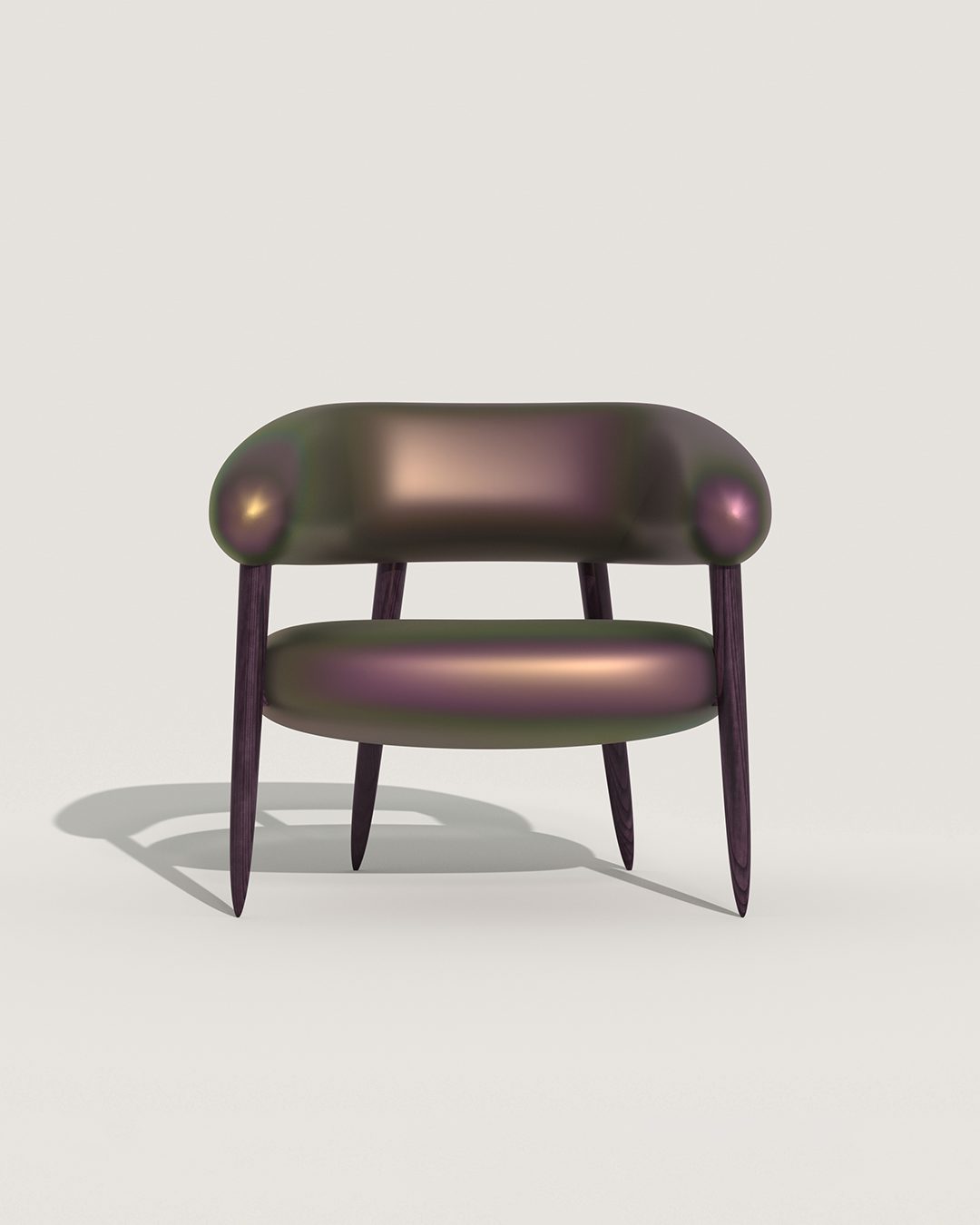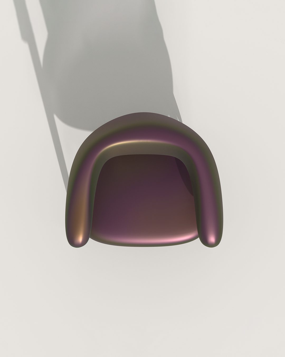 Les dents du morse sont les pieds du fauteuil de la collection morse. La surface luisante en néoprène, sans couture, évoque la peau de l’animal.
