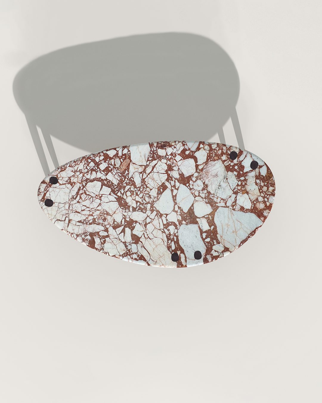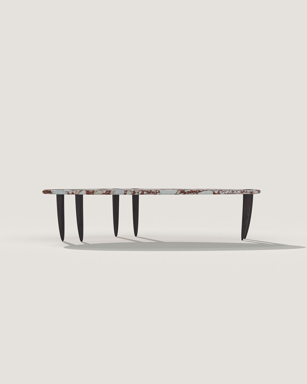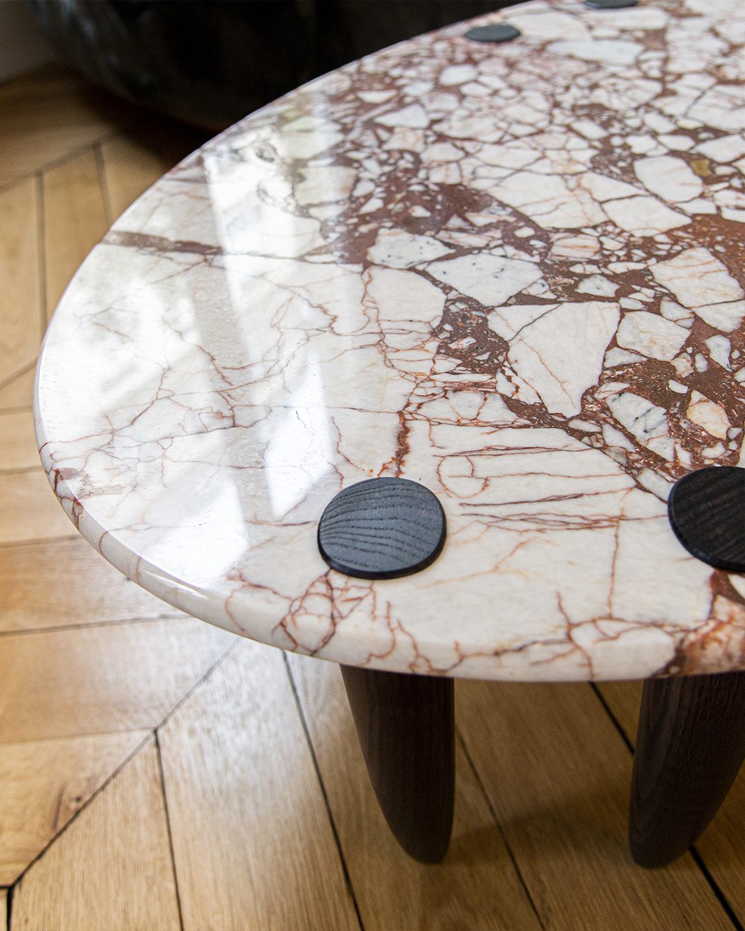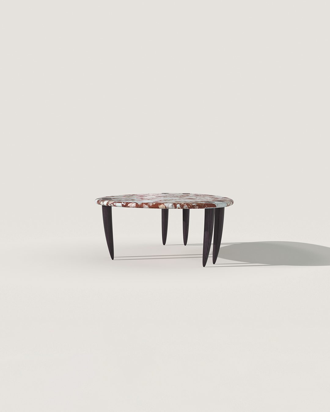 Pour soutenir leurs plateaux encalacatta viola, les tables basses gigogne Morse arborent les pieds emblématiques de la collection, en forme de dents de morse.