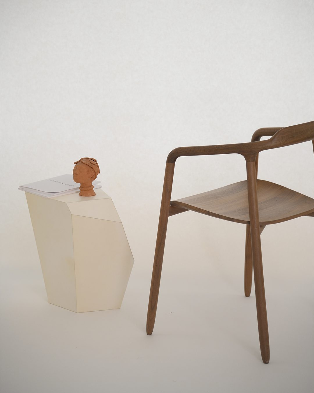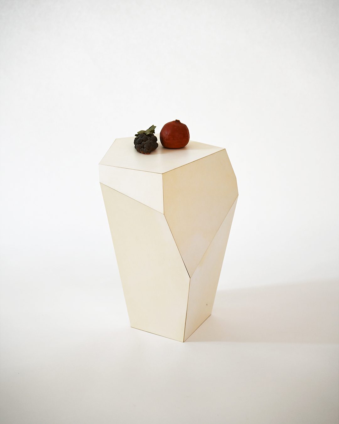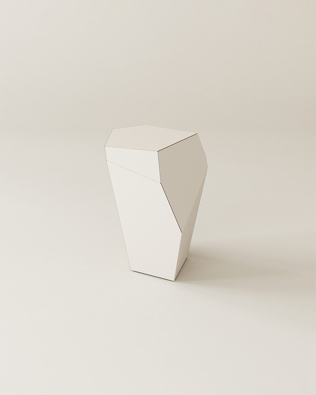 Parchemin est une table d’appoint facettée en parchemin, où la force minérale rencontre le raffinement de l’artisanat. Sa géométrie sculpturale contraste avec la douceur du parchemin, matière vivante qui se patine avec le temps. Une pièce pure et intemporelle, reflet de la vision de Franck Genser — entre simplicité brute et richesse du détail.