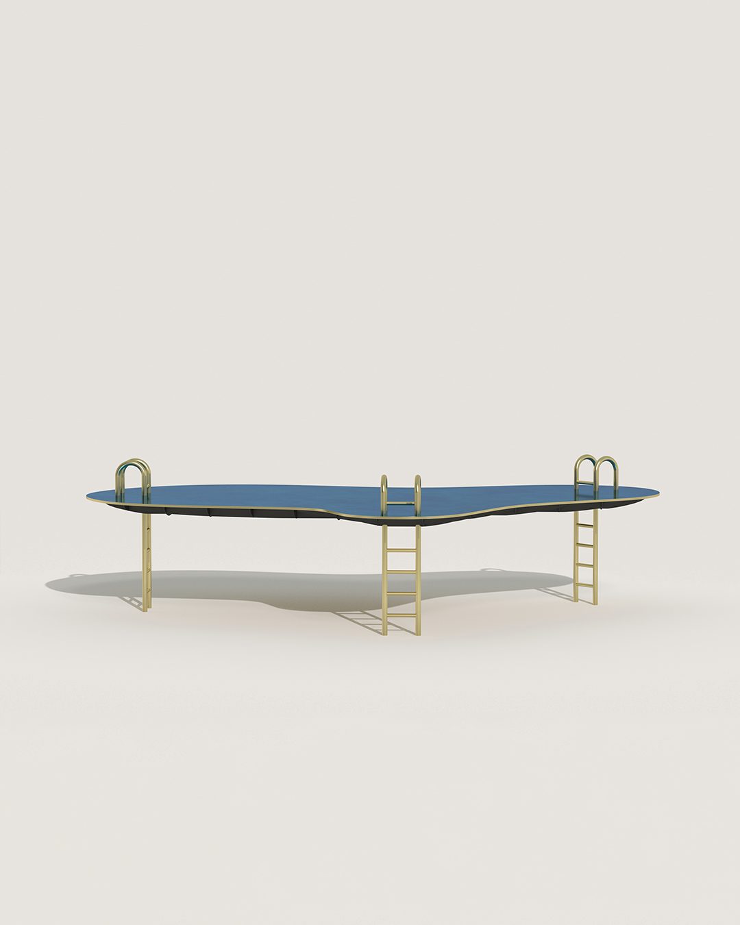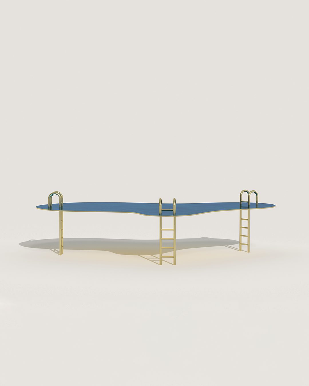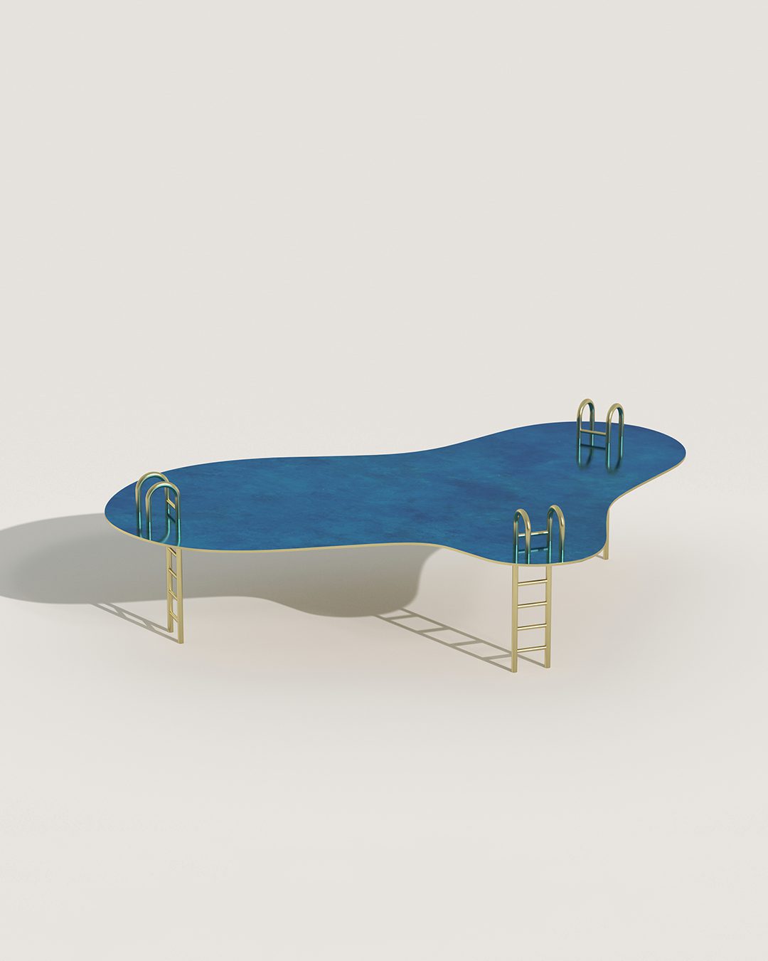 Piscine est une pièce incontournable de la collection table. Elle invite à la détente avec son piètement en forme d’échelle réalisé en laiton ciré. Le plateau est en bronze, avec une patine à chaud qui permet d’apporter cette unique couleur bleue.