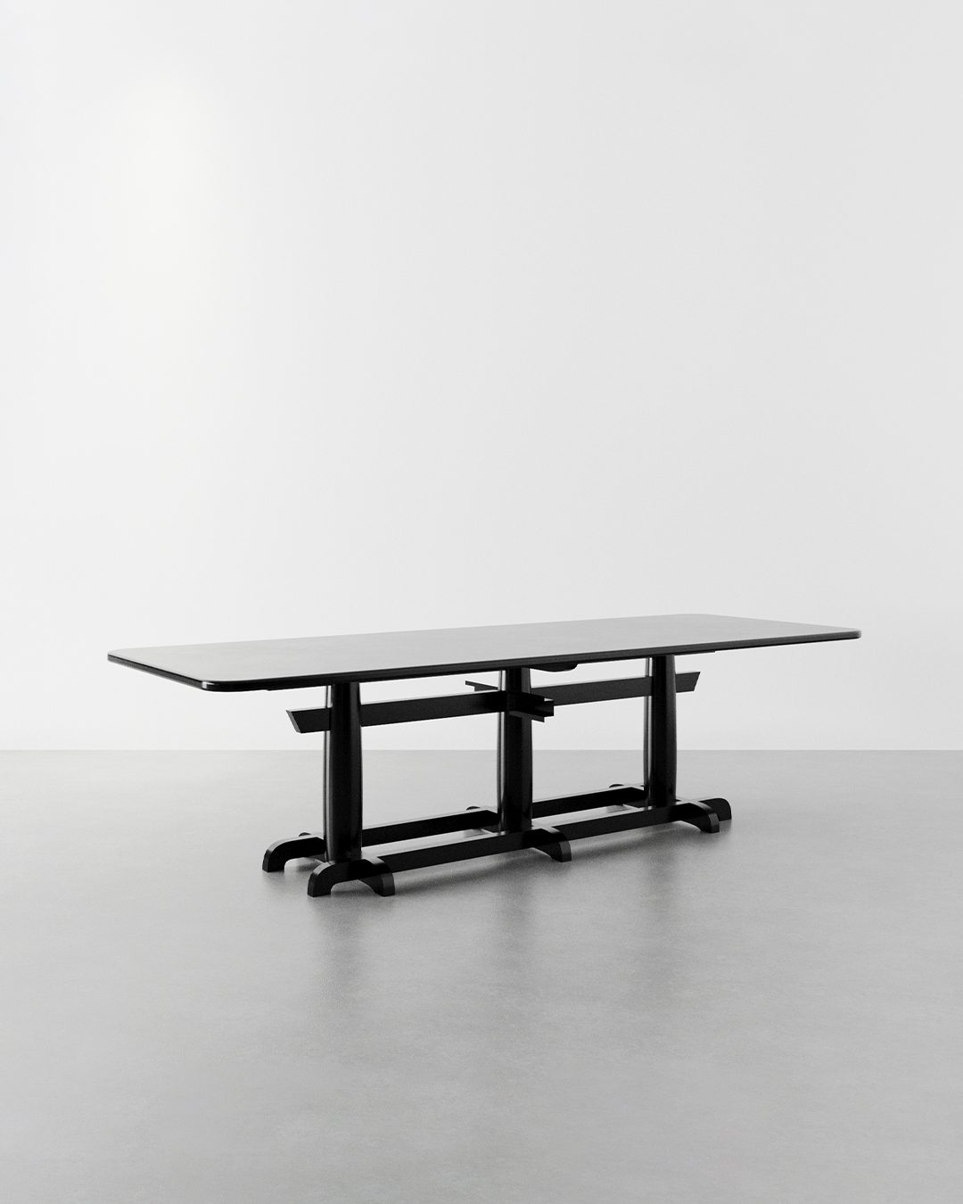 La collection Shogun semble née de la rencontre entre une volonté minimaliste de Franck Genser et l’esthétique nippone. La justesse de ses proportions et sa composition graphique font de cette table une pièce architecturale. Structure et plateau en hêtre laqué ou frêne teinté.