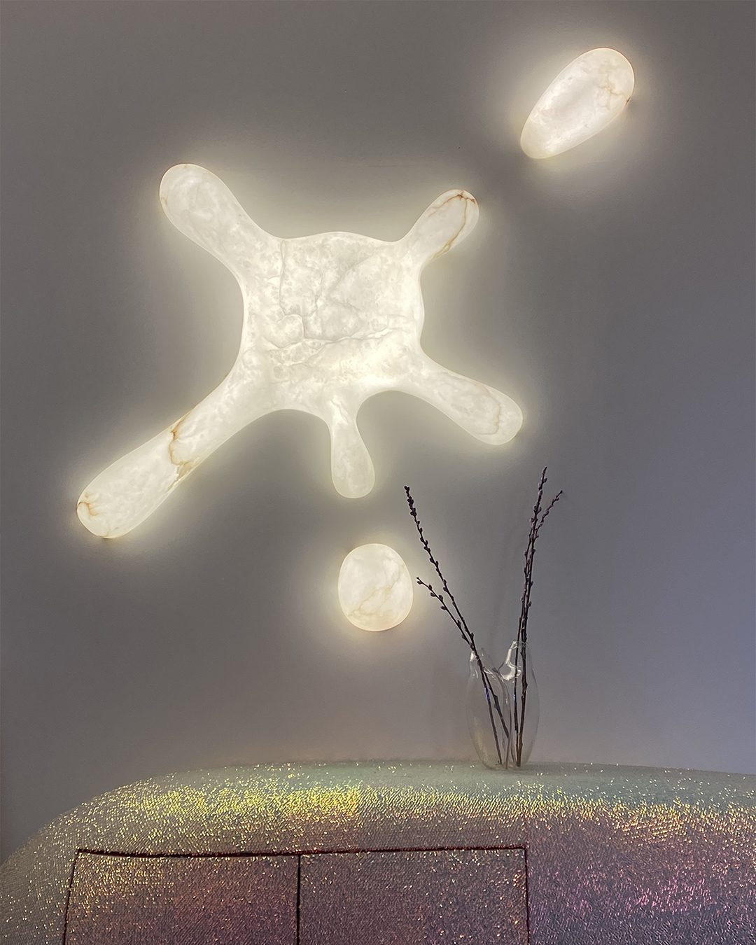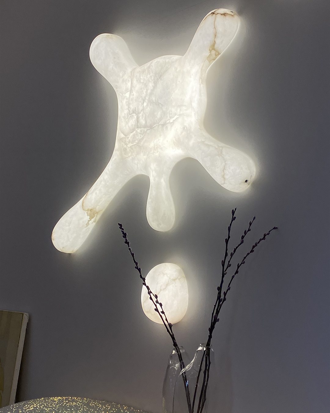 La sculpture lumineuse Splash en albâtre est une pièce iconique et monumentale de la collection COSMIC. Composée de trois pièces (1 pièce principale et 2 petites pièces), la forme de l'applique rappelle les projections d'un liquide contre un mur. Série de plusieurs pièces uniques.
